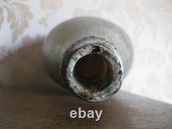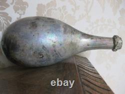 Old blown glass spa bottle from the 18th century. Length: 25.30 cm Weight: 555 g. Beautiful iridescent patina with pink reflections, natural, due to its age and humidity.
