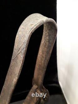 Rare antique bronze bell with leather collar for herding dog. A dog and a flower are molded on the bell. Very beautiful leather collar with buckle. Everything is original and in very good condition.