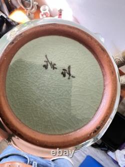 19th century Yuhuchun antique vase with Korean crane inlays, celadon porcelain. Height 24.5 cm and width 12 cm.