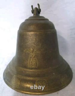 Beautiful and large dining hall bell used to signal meal times, an antique object made of solid bronze. Its original chime is present.