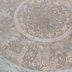 Persian Plateau Kadjar In Chiseled Brass Hunting Scene.