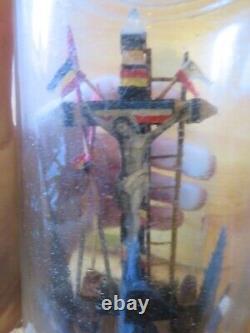 SUPERB old BOTTLE PASSION CHRIST reliquary HAIRY 1918 WW1 militaria