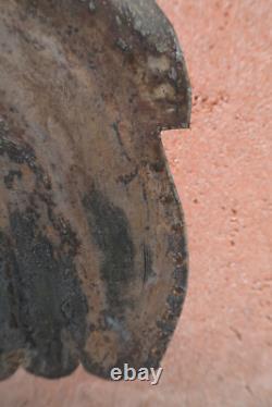 Very old weather vane in beaten and riveted copper featuring a rooster. It has remnants of antique paint. The screwed support and rod may be later additions, but it's uncertain. Height without the rod is 14 1/2 inches. Length is 18 1/2 inches and the width is 3 1/2 inches at its widest point.