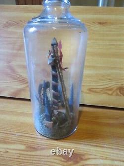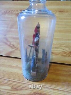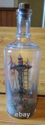 Très belle ancienne bouteille de la Passion / Calvaire en bouteille contenant la représentation de Jésus Christ sur la Croix avec les outils de la passion, de la mousse naturelle. Bouteille en verre de 26 cm (sans le bouchon). Superbe objet de collection, RARE car réalisé par un poilu des tranchées ayant été hospitalisé.